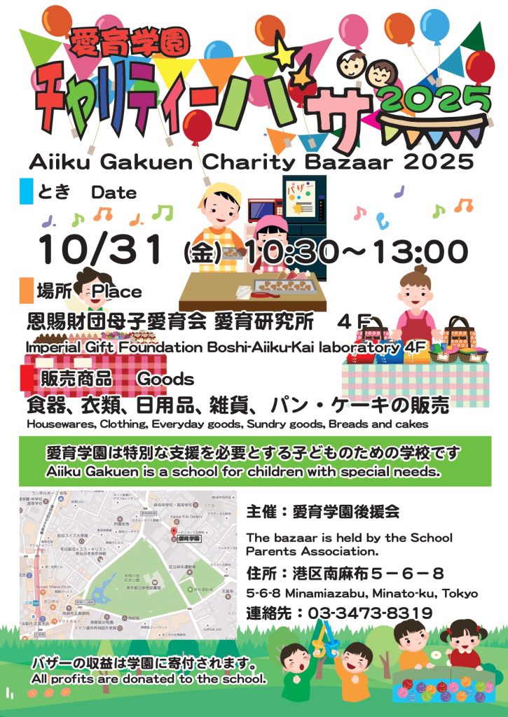 愛育学園チャリティーバザーを協賛企業様のご協力のもと、今年も以下の通り開催いたします。